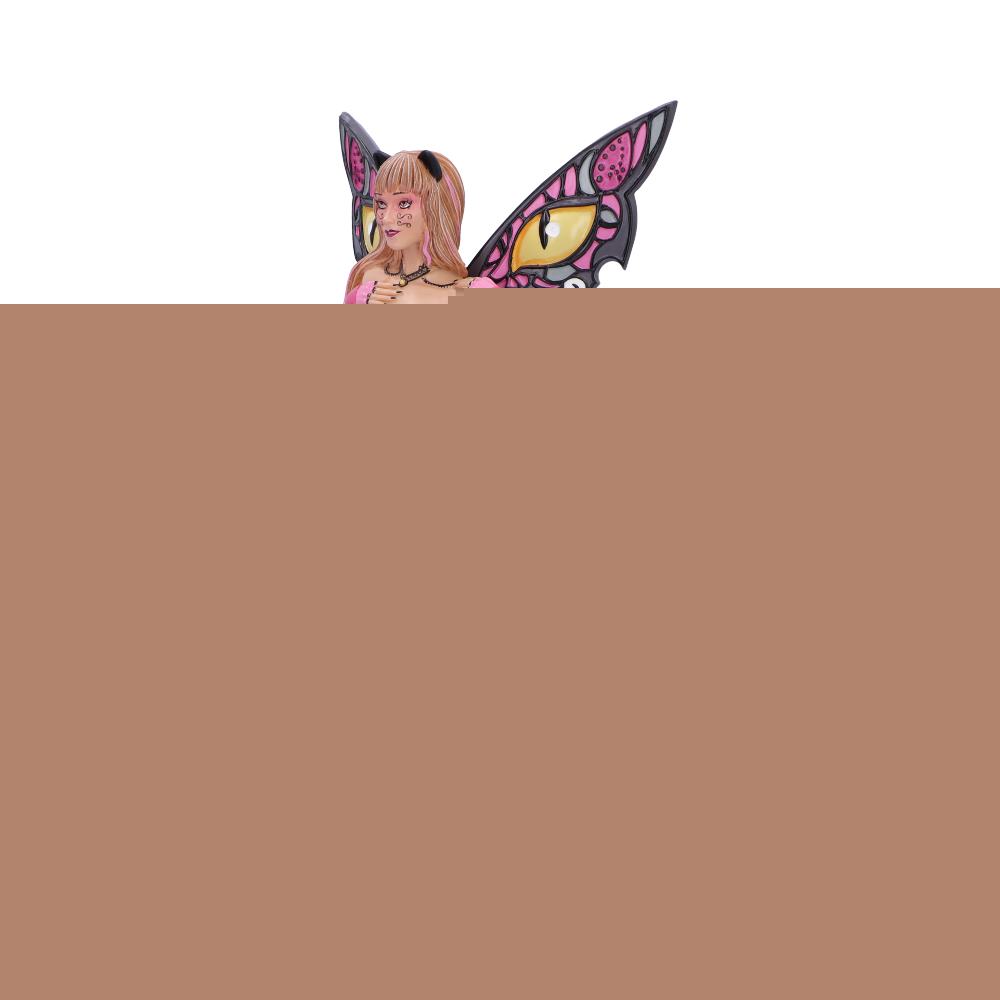Delve into Wonderland with our exclusive Cheshire Cat fairy, part of Nemesis Now's Wonderland Fairies collection. Adorned with unique wings featuring the Cheshire Cat's eyes and grin, she wears an intricate pink lace bodysuit and striped stockings, standing amidst pink spotty mushrooms. Packaged in a branded gift box, Cheshire Cat is perfect for Alice in Wonderland fans or lovers of eccentricity.