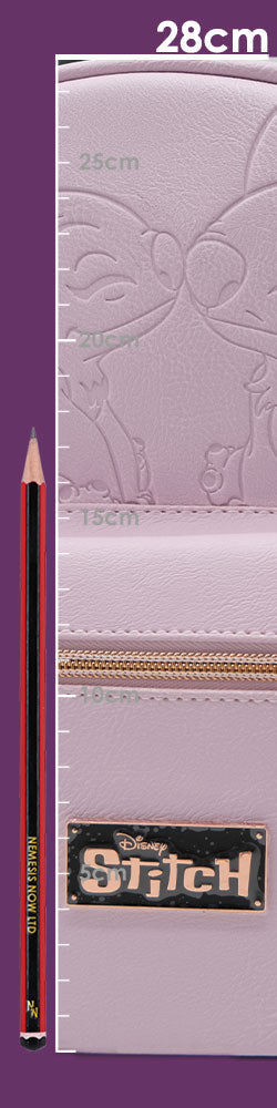 Embrace the adorable charm of Disney's Stitch and Angel with our baby pink backpack. Featuring adjustable shoulder straps and a convenient top carry handle, this spacious bag is both practical and stylish. Adorned with rose gold hardware and a fluffy pink pompom, it's perfect for fans of all ages seeking a fun accessory. With multiple zippable compartments, add a touch of Disney magic to your wardrobe today.