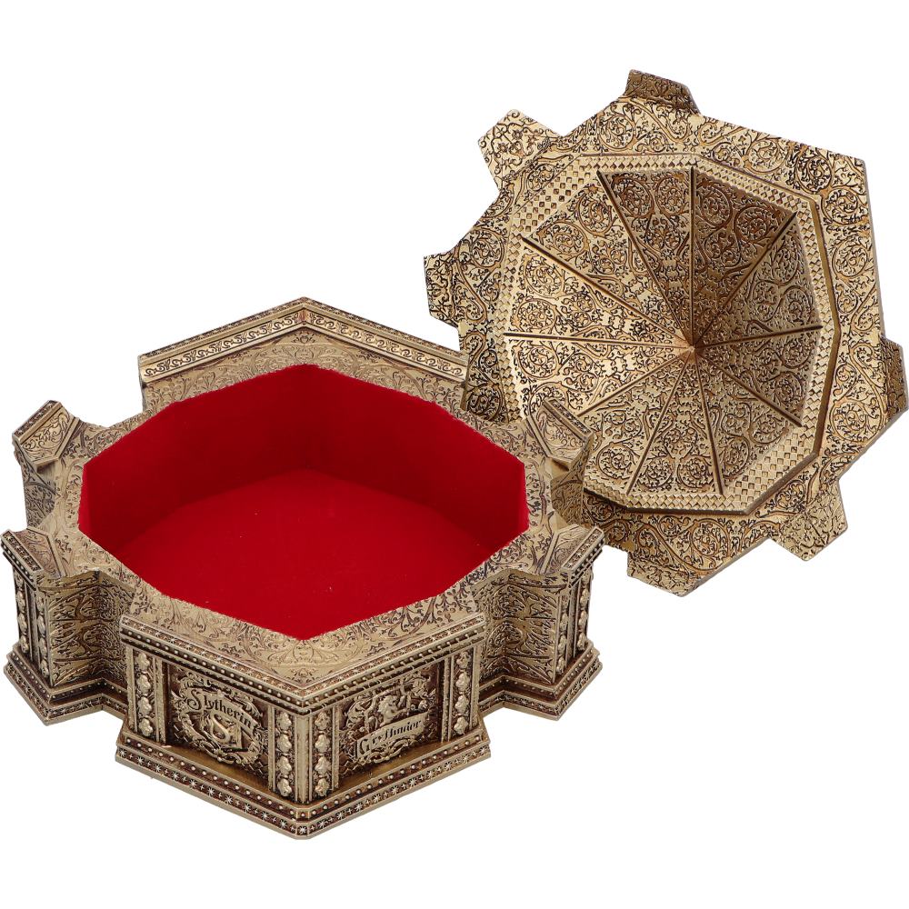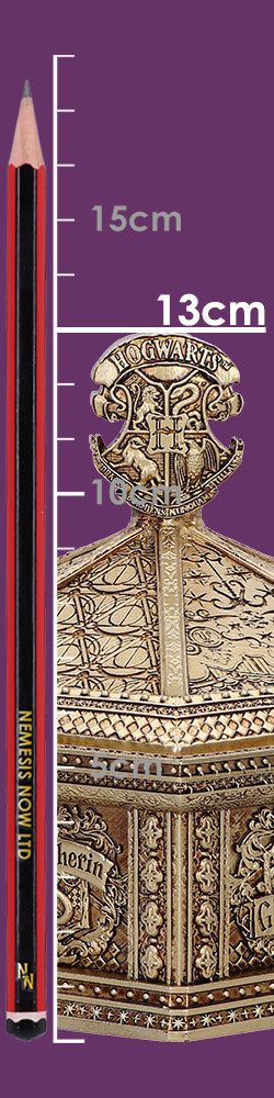 Magic is waiting for you with this Officially Licensed Harry Potter Hogwarts Trinket Box. Featuring the four Hogwarts houses around the outside, along with incricate detailing based on the Deathly Hallows and Hogwarts. Cast in the finest resin before being finished in bronze, this Hogwarts Trinket box is made for keeping all your secret treasures safe.